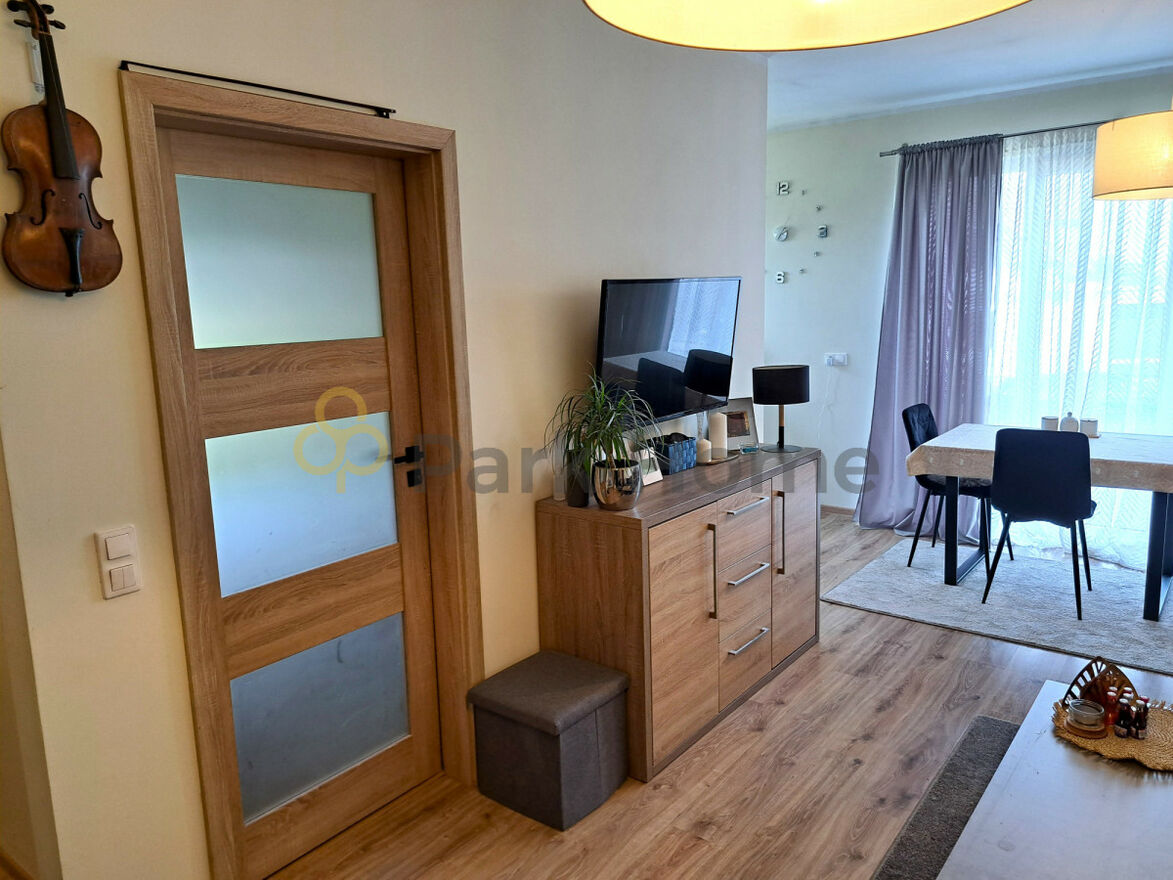 Mieszkanie o powierzchni 48 m², położone na parterze budynku szeregowego, składa się z trzech pokoi, w tym przytulnego pokoju z aneksem kuchennym, łazienki oraz korytarza.